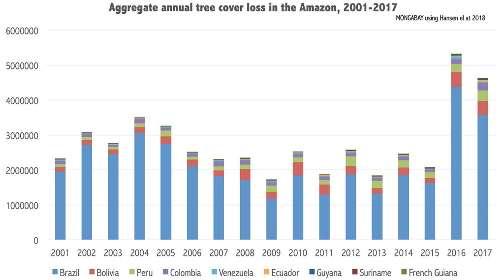 According the data above show the tree cover loss are under control after 2006 but this situation are getting serious in 2016 and 2017.